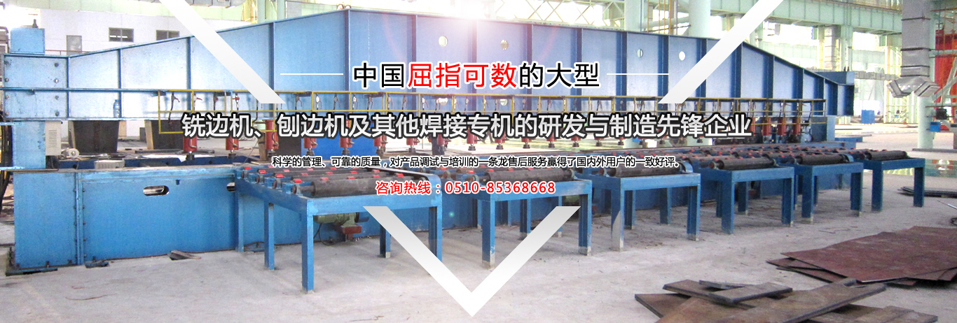 公司是中國金屬銑削切割自動焊接工藝的搖籃,公司是國內(nèi)制造有壓梁、無壓梁銑邊機、刨邊機及其他焊接專機的專業(yè)廠家。取得國家專利局頒發(fā)的最新銑、刨邊機產(chǎn)品專利證書。通過了ISO9001.2000國際質(zhì)量體系認證,并獲得了“全國用戶滿意產(chǎn)品”、“江蘇省質(zhì)量信得過AAA級品牌企業(yè)”的榮譽稱號。銷售網(wǎng)絡(luò)遍布全國,部分產(chǎn)品出口東南亞及歐美等國家。公司本著:質(zhì)量為首,用戶至上,信譽為本...     【詳細】
